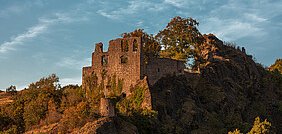 When the nearby mountains become darker and darker at dusk and the approaching full moon bathes the deep valley, the "Schelmenkopf" and the walls of the castle in a satin light, the castle ruins show themselves from their most beautiful side.
