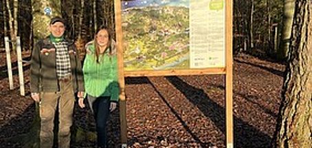 We are delighted about the cooperation between our tourism office and the forest district manager Dieter Gass (Donnersberg Forestry Office) and the forestry foreman Valeri Ruks (Sippersfeld local authority). While the forestry office was responsible for the financing and construction of the support, the municipality of Winnweiler provided the information board at the Igelborn hut.