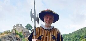 Als Burgwächter führt er durch das Dorf und über das Burggelände und weiß gewiss ein paar kurzweilige Geschichten zu berichten! Von Drachen? Von Prinzessinnen? Und von Gespenstern? – Welch holde Prinzessin, welch edler Ritter zeigt sich in seinem Kostüm? Eine Burg hat immer viel zu erzählen und es ist spannend, wie es den alten Rittersleut‘ so ergangen ist.